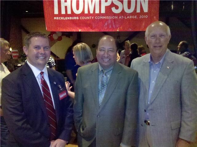 Thompson said the top issues facing Mecklenburg County are crime, schools and job creation, and in what is likely to be a recurring campaign theme moving forward he noted that the three GOP at-large candidates are a former sheriff, a teacher, and a small business owner.